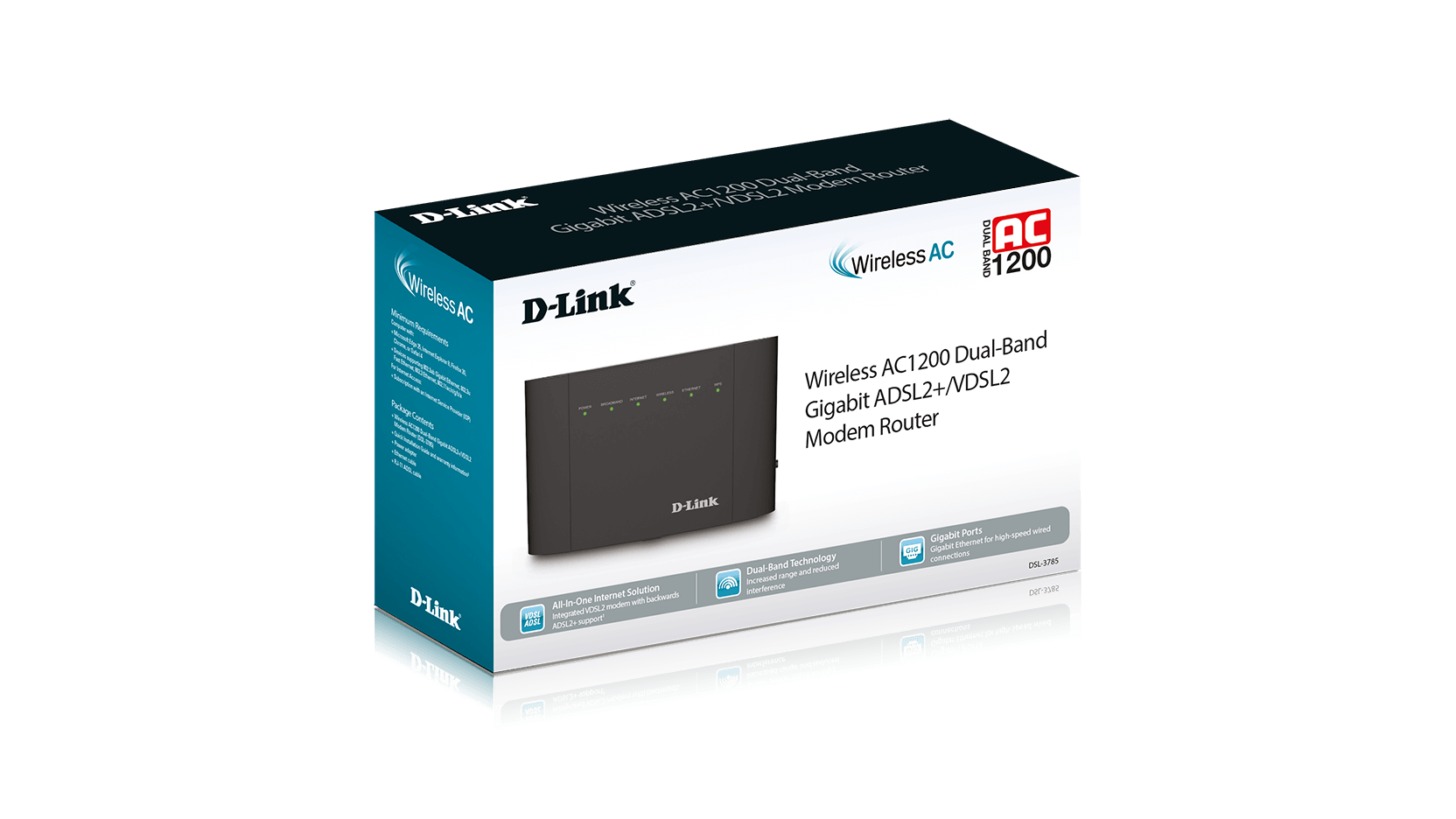 The DSL-3785 Wireless AC1200 Dual-Band Gigabit ADSL2+/VDSL2 Modem is a versatile, high-performance router for the home and small office. With integrated VDSL, supporting download speeds of up to 100 Mbps, the latest Wireless AC Wi-Fi technology, firewall protection, Quality of Service (QoS) and 4 Gigabit Ethernet switch ports, the DSL-3785 provides all the functions needed to establish a secure and high-speed connection to the Internet.
