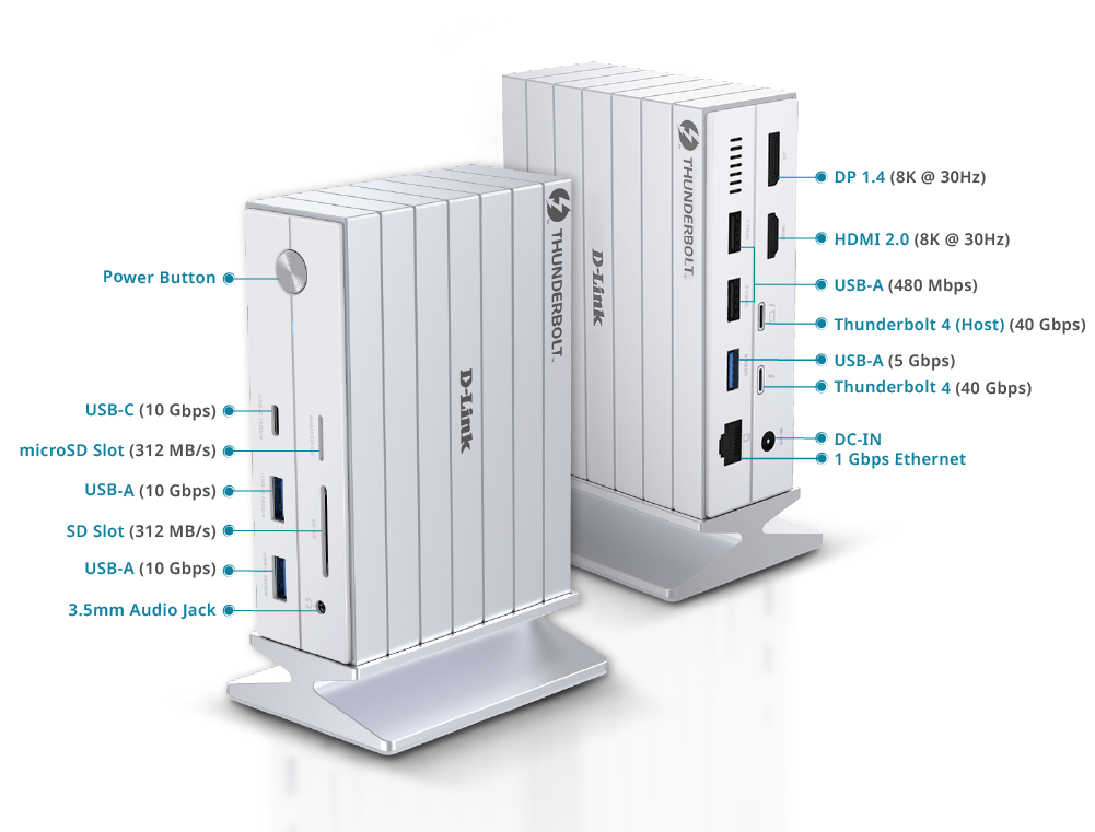 • Up to 8K resolution: HDMI 2.1, DP 1.4, and Thunderbolt 4 ports support up to 8K @ 30Hz single display