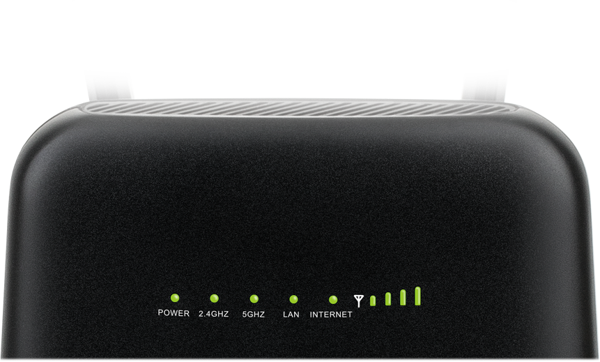 DWR-960 tillhandahåller trådlös internetanslutning via 4G-mobilnätet med hastigheter på upp till 300 Mbit/s1 och trådlös internetanslutning via fast bredband med kombinerade överföringshastigheter på upp till 1200 Mbit/s2 för snabb och responsiv internetåtkomst.