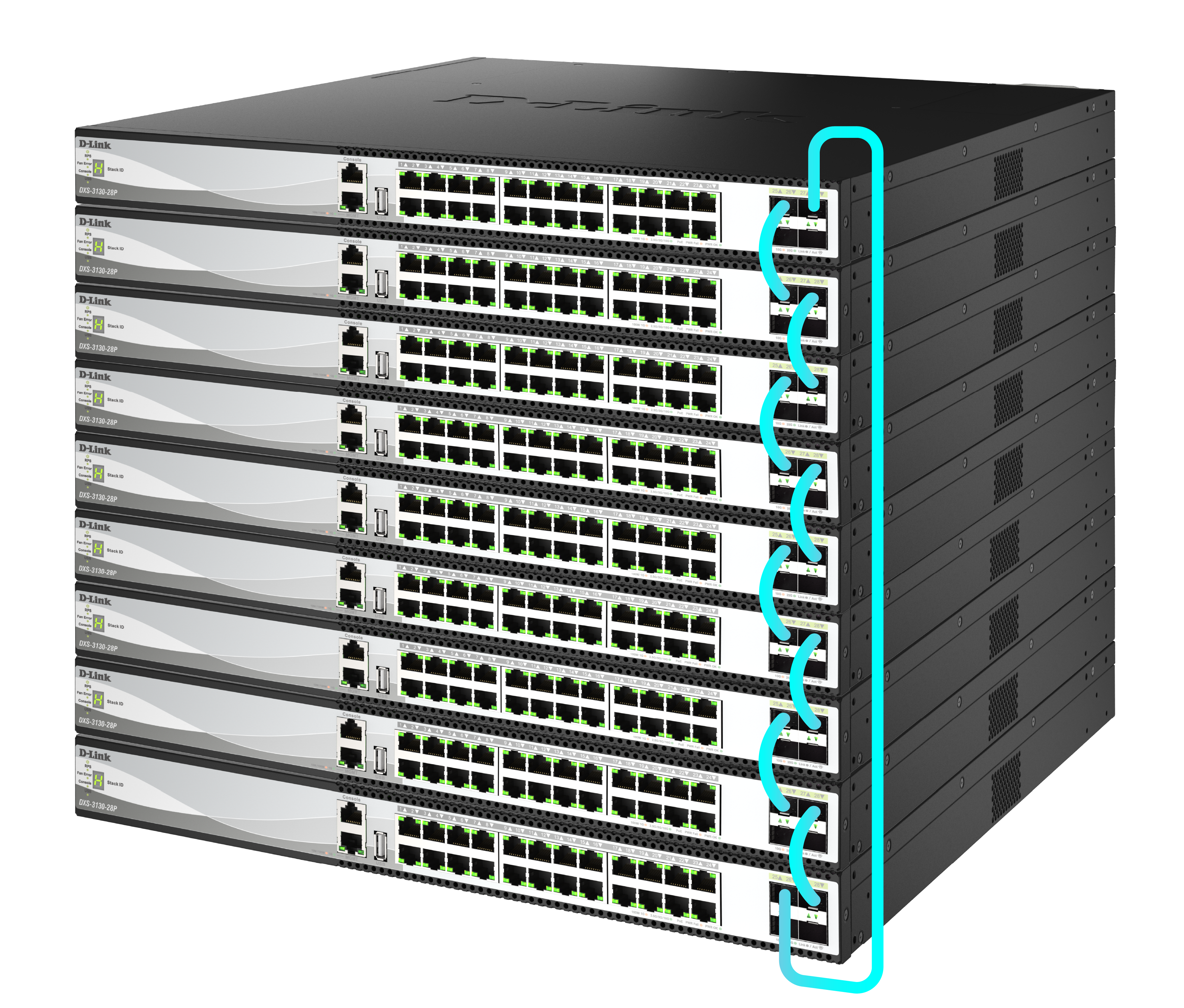Stapla upp till 9 switchar med 200 Gbit/s bandbredd och enhetlig IP för förenklad kontroll, snabb failover och solid redundans