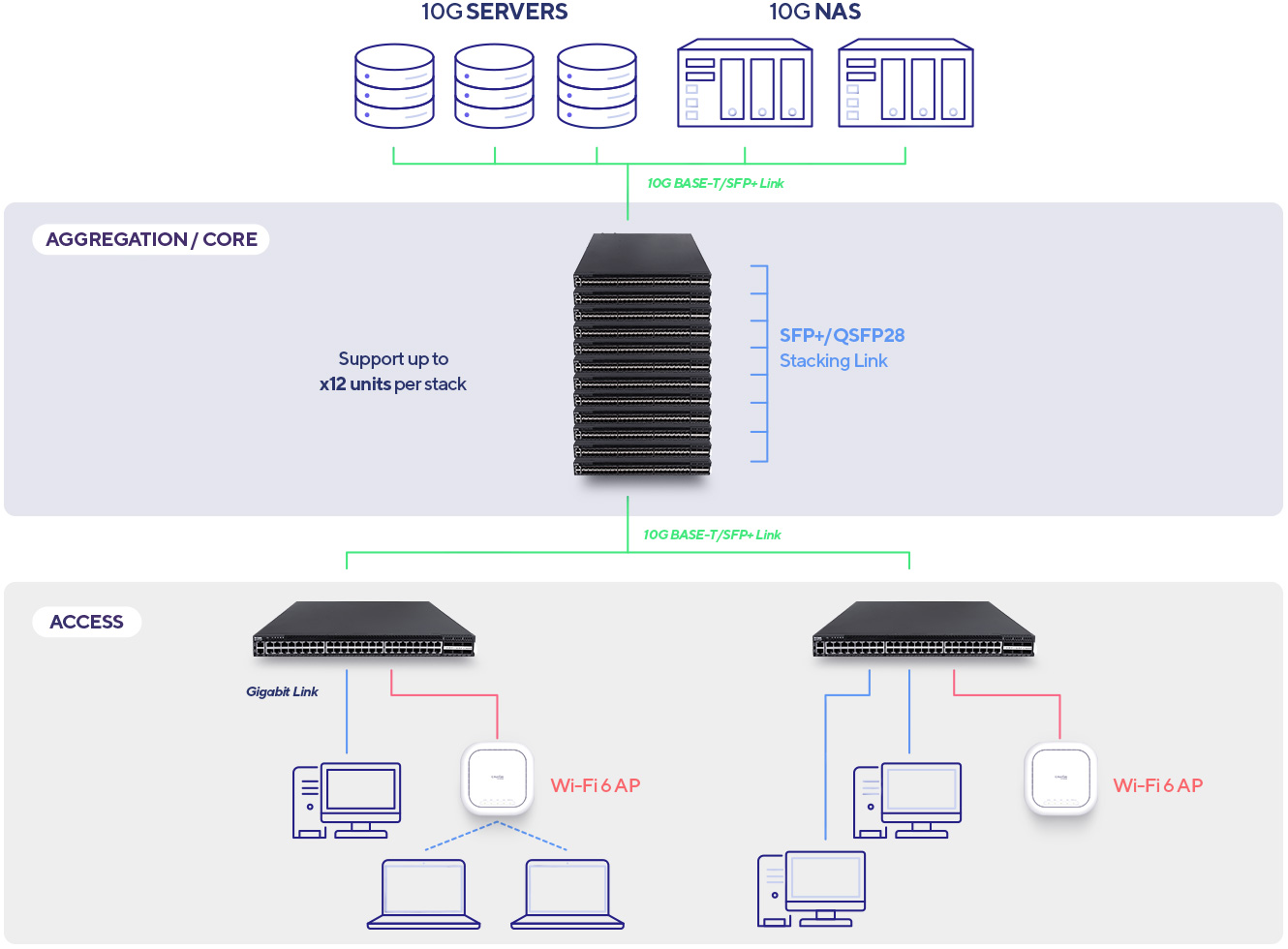 Stack up to x12 switches for high-density Gigabit aggregation