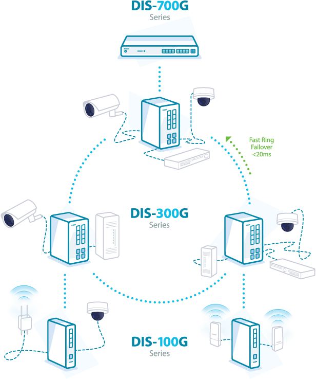 DIS-300G 和 DIS-700G 系列具有高可用性網路功能,可最大限度地延長正常運行時間並確保自動化網路始終正常運作。