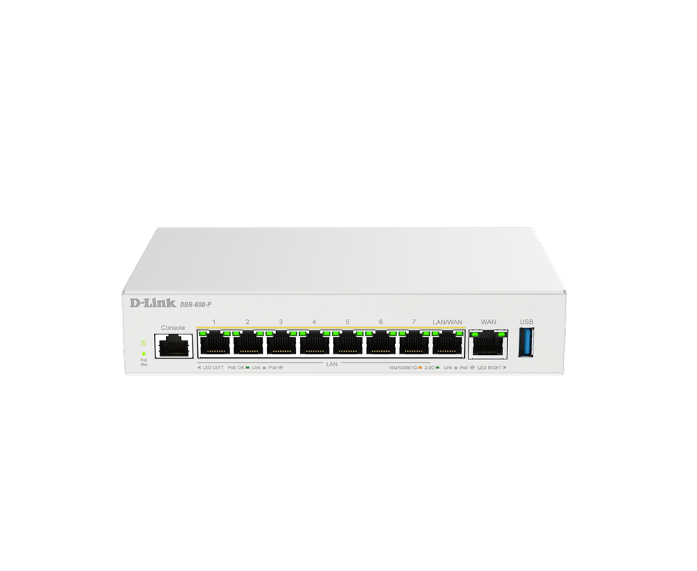 它提供高密度2.5G 高速網路埠,並可透過其多樣化的介面快速靈活地擴展網路容量。對於遠距辦公人員,DBR-600-P 可確保隨時隨地無縫存取辦公室網路。對於小型辦公室,它可有效阻止惡意流量,並保護您的網路安全。此外,內建的管理平台簡化了 AP 管理,從而提高效率和整體效能。