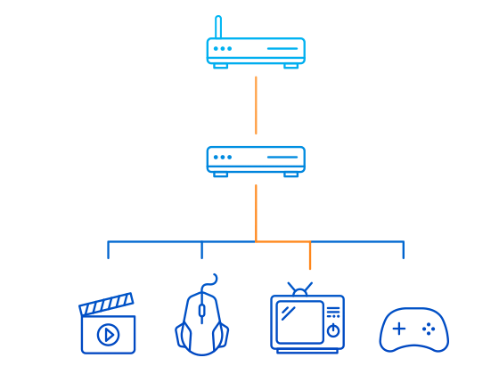 Smaller switches great for advanced home users that would prefer to not connect everything through WiFi and congesting their network. This switch functions like a powerstrip - one cable turns into multiple. Run a single cable from the router and then turn that cable to multiple gadgets.