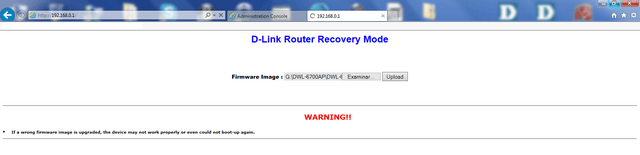 – Open a Web-browser and go to the recovery mode Web-UI (192.168.0.1)