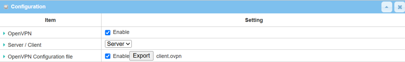 OpenVPN Configuration File Check the Enable box to activate the configuration export for OpenVPN client