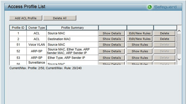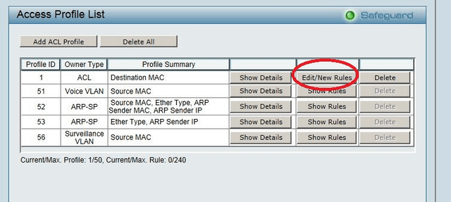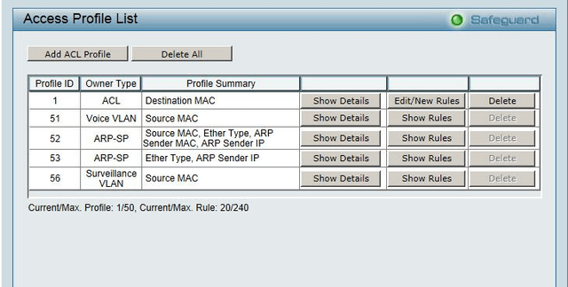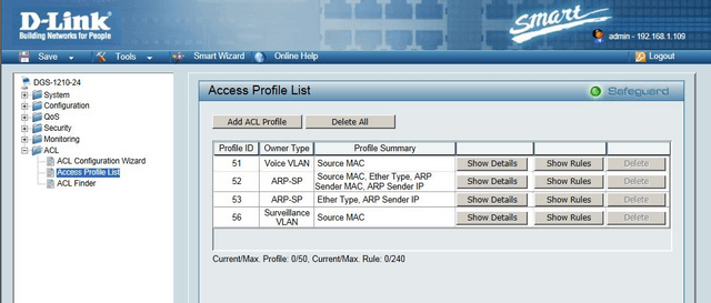 Once inside the web management page, click on “ACL” then “Access Profile List”