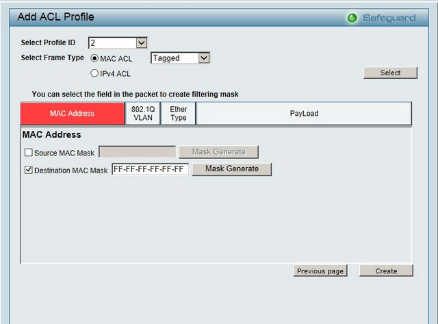 Select Source MAC Mask: FF-FF-FF-FF-FF-FF