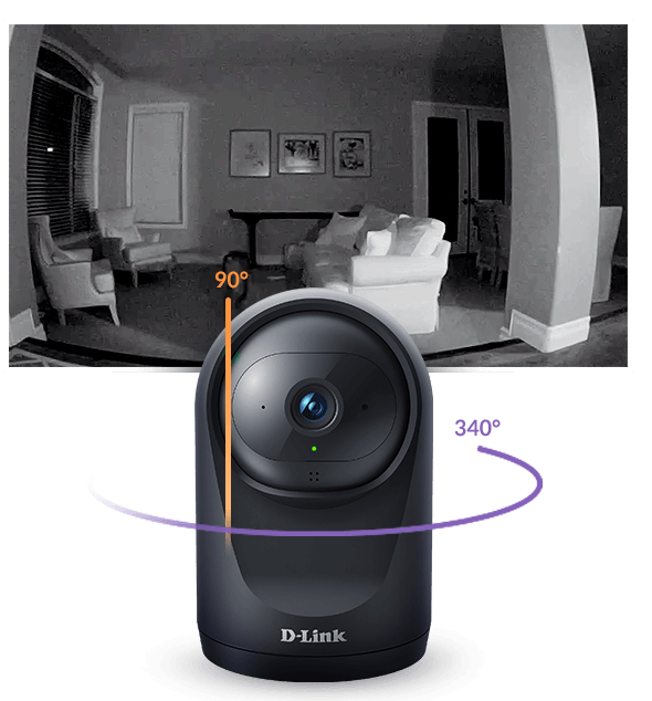 The DCS-6500LH uses a high-resolution megapixel sensor with motorised pan and tilt to give you a clear view of an entire room, front and back, with a single camera. You can quickly scan a wide area and zoom in on specific areas for more detail.