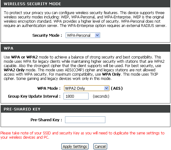 - Pre-Shared Key: Set your Wireless Connection password here.