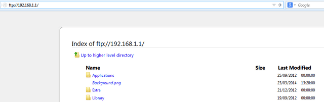 The second method is: FTP File Server. FTP stands for File Transfer Protocol, and is a simple method for accessing files on the USB Storage Device: