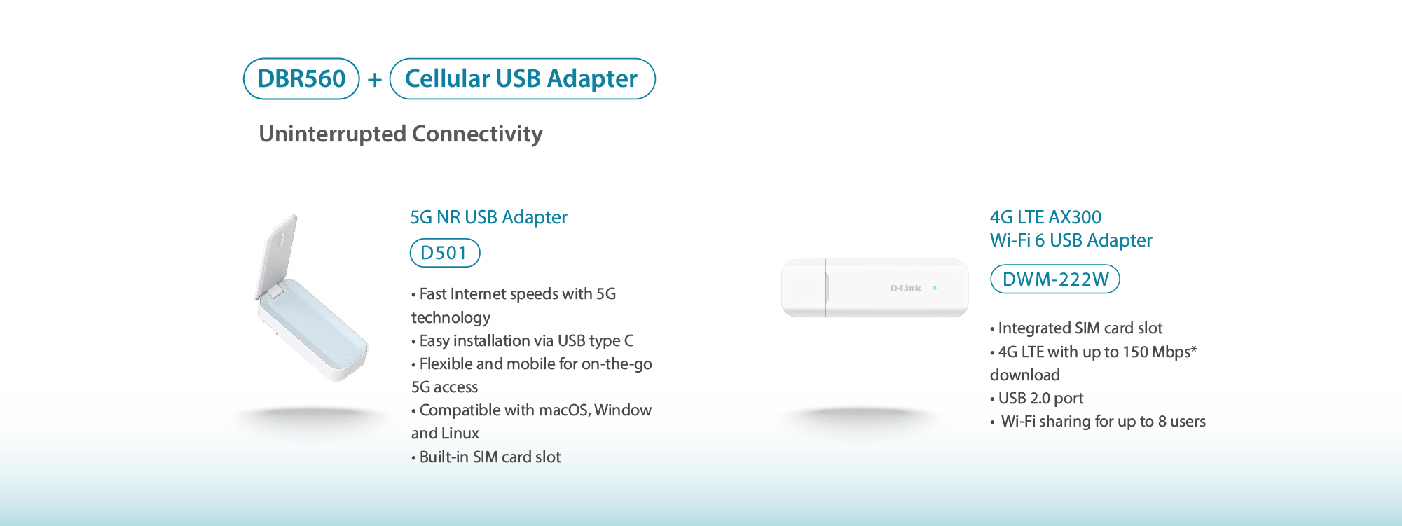 *Compatible with D-Link DWM-222W and D501 cellular USB adapters.
