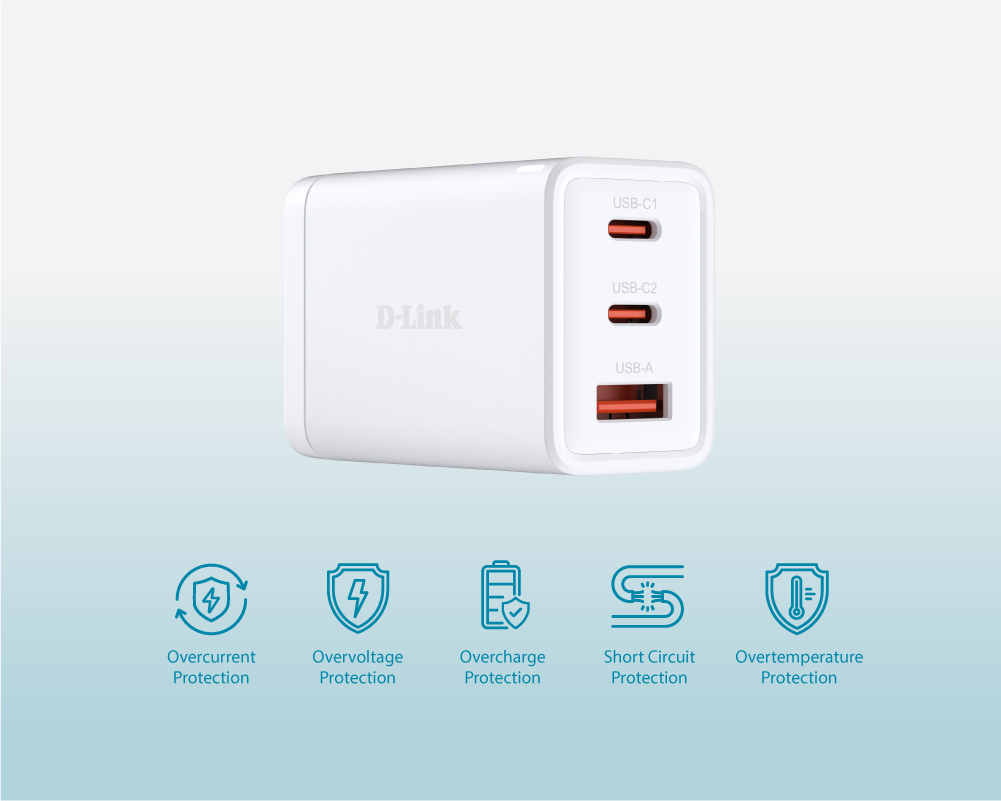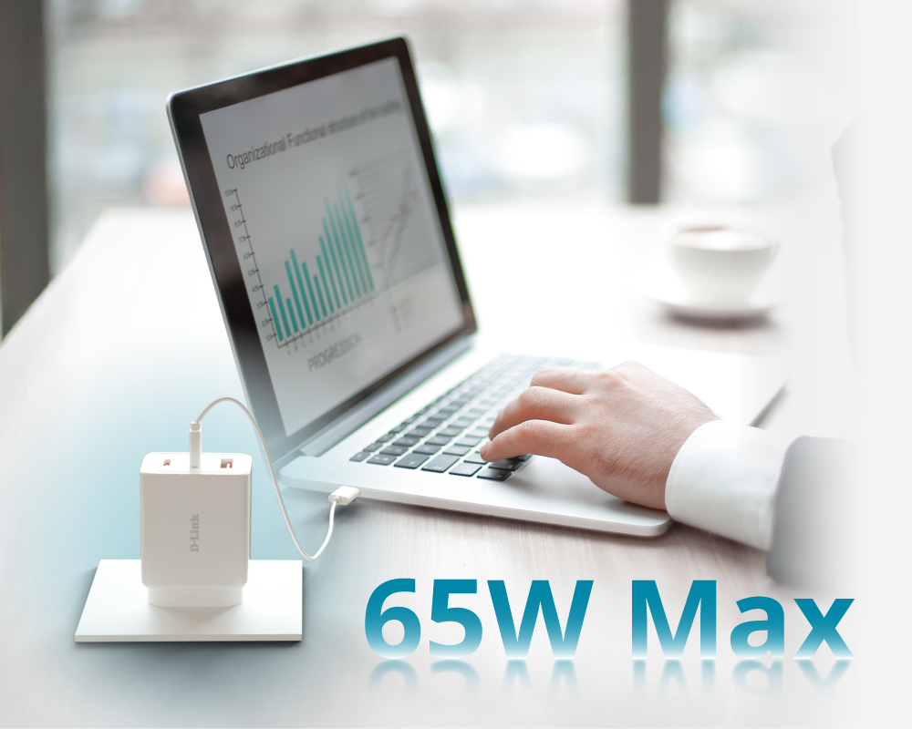 Meet the D-Link DCP-651 65W GaN Charger, a compact, all-in-one charger built for work, travel, and daily use. Powered by GaN technology, it delivers up to 65W of efficient charging for laptops, tablets, and cell phones. With dual USB-C ports and interchangeable plugs, it’s your go-to charger wherever life takes you.