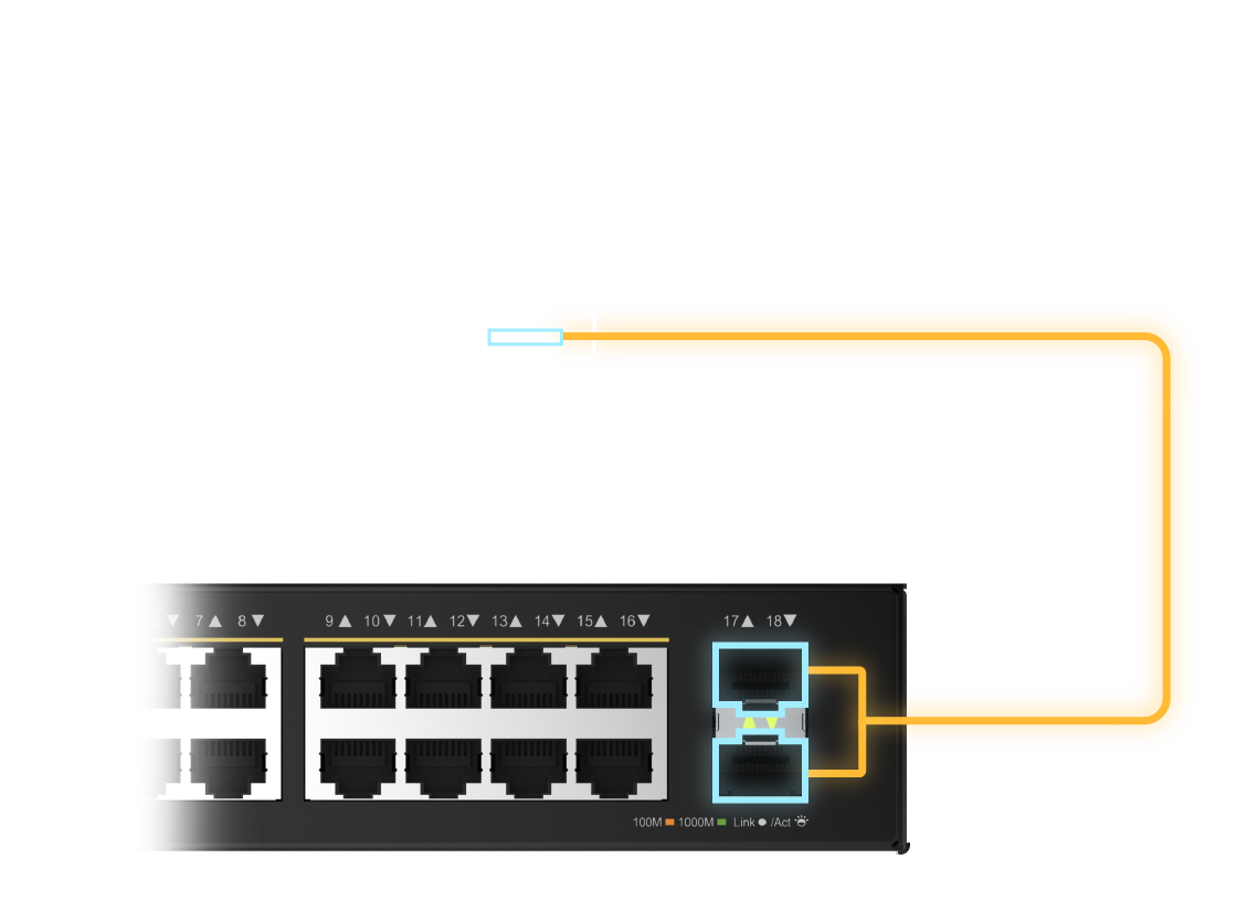 The D-Link DGS-1018P 16-Port Unmanaged PoE+ Switch with 2 SFP Ports includes two dedicated SFP uplink ports that help you to scale your Gigabit network beyond the *100-meter limit of standard Ethernet cabling. These fiber-ready ports are ideal for connecting to core or aggregation switches across floors, between buildings, or throughout large commercial spaces. By supporting long-distance, high-speed uplinks, the DGS-1018P adds flexibility and scalability for growing networks in retail, education, business, and multi-site environments.