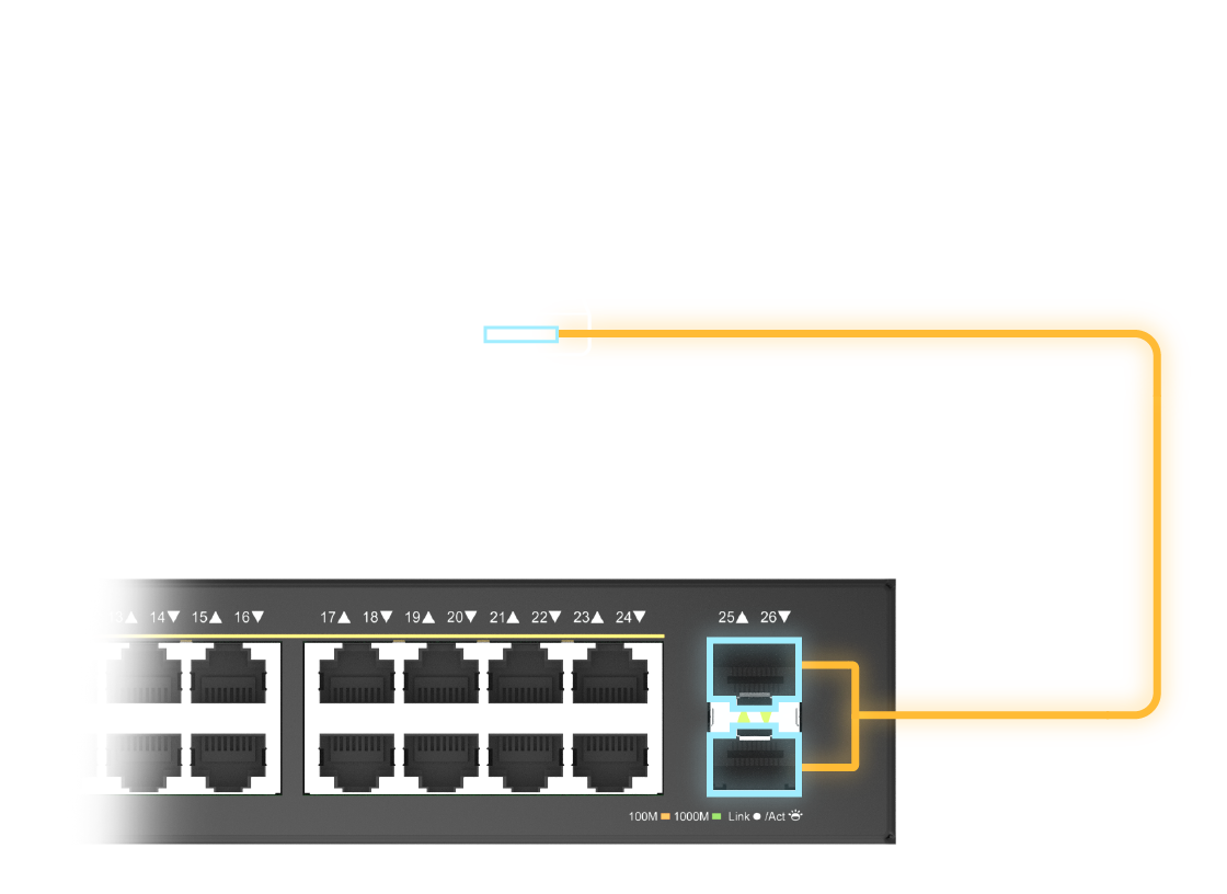 - 2 Gigabit SFP uplink ports extend range beyond *100 meters