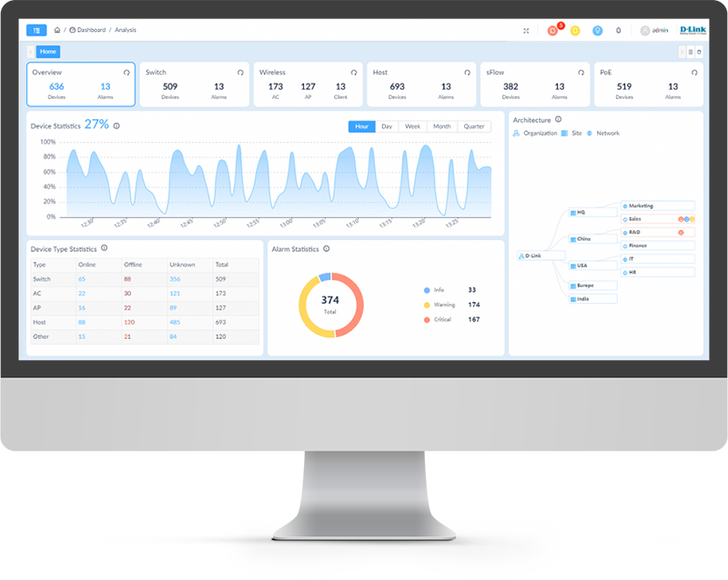 The DGS-1520 series is overseen through D-View 8, an exceptionally adaptable and effortlessly scalable network management software. This software enhances network performance, streamlines network infrastructure, increases bandwidth, and minimizes the complexity of cabling.
