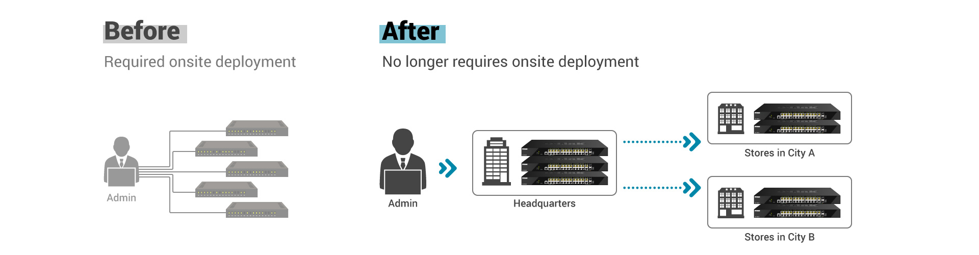 Zero Touch Provisioning is perfect for multi-site network expansions. Simply preconfigure your network settings in a centralized location, then install the DGS-1520 switches for effortless deployments.