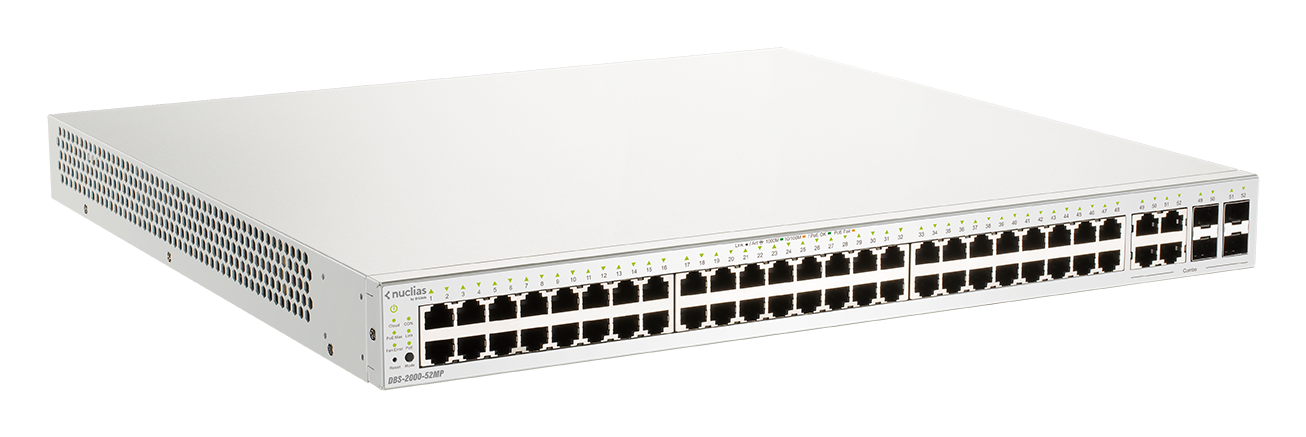 While easy to deploy and manage, Nuclias Cloud-Managed Switches are equipped with enterprise-grade features including L2 capabilities such as Link Aggregation Control Protocol (LACP), IGMP snooping, Voice VLAN, Spanning Tree Protocols (STP and RSTP), and a security feature set that includes Access Control Lists (ACLs), port security, and DHCP Server Screening for increased protection.