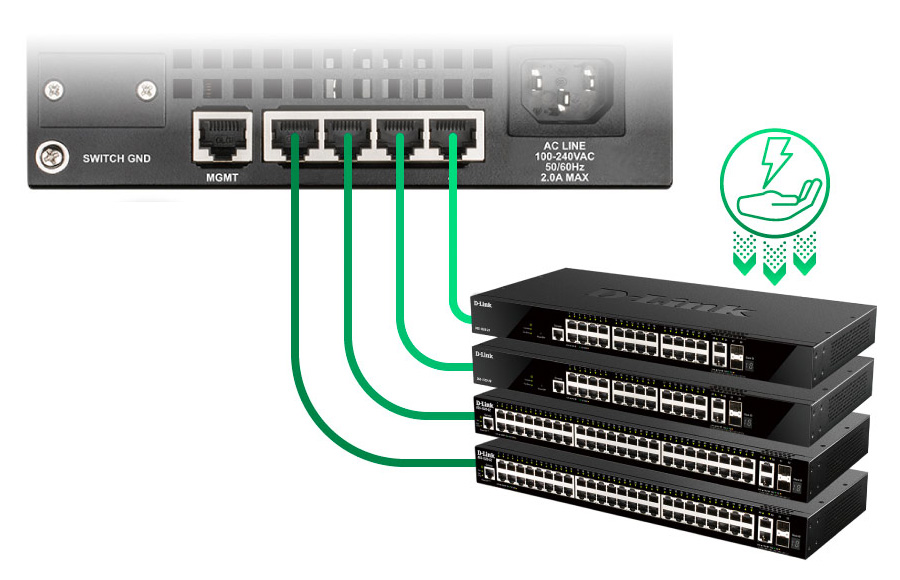 Physically stack up to 8 switches with a total of 80G stacking bandwidth.