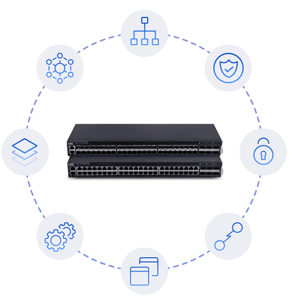 The switch also supports OpenFlow 1.3 for SDN-enabled network compatibility and Switch Resource Management (SRM) for flexible system resource manageability.