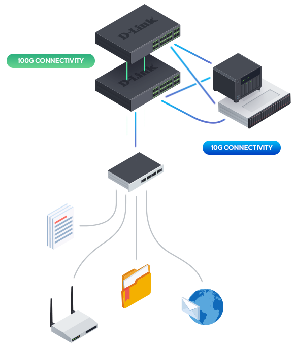 DXS-3610 switches offer high availability capabilities such as ring stacking (with DEM-CB100Q28), ERPS, and link aggregation to provide reliable uptime for your business network.
